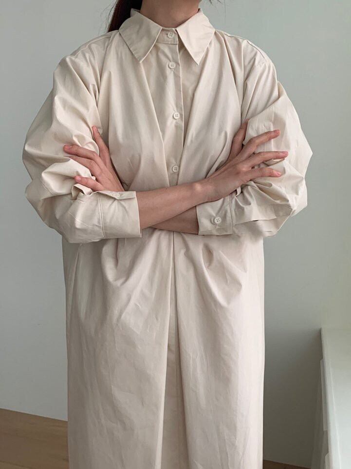 シャツ ワンピース ロングスカート シャツワンピース 膝下 ミモレ丈 ロング丈 ミディアム丈 長袖 襟付き ワイド Iライン フロントタック 前開き かわいい 大人可愛い シンプル カジュアル 大人 上品 おしゃれ レトロ 大人女子 こなれ感 ラフ キュート ルーズ 抜け感 無地 夏 10代 20代 30代 レディース ママ マタニティ 学生 デート お出かけ 公園デビュー 女子会 休日 着回し 普段使い 楽ちん ワンサイズ ゆったり ゆる サイズ ホワイト ブラウン