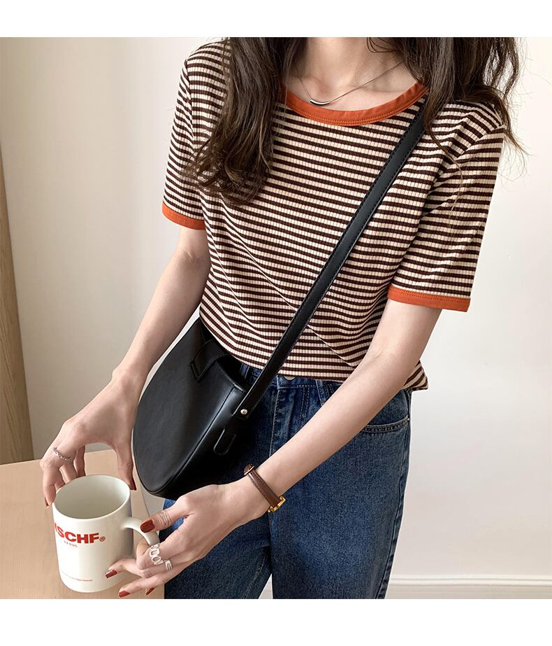 ボーダートップス ブラック ブラウン グリーン 大きいサイズ 小さいサイズ トップス Tシャツ シャツ 袖あり 半袖 ラウンドネック 襟なし かわいい シンプル カジュアル おしゃれ お洒落 ラフ ラブリー キュート ガーリー 爽やか スマート 柄 ボーダー 春 夏 秋 ロングシーズン 10代 20代 30代 40代 レディース 女性用 ママ 女の子 学生 デート お出かけ 公園 女子会 アウトドア お茶会 ランチ ショッピング 着回し 普段使い 重ね着 楽ちん 定番 プチプラ 安い S M L XL