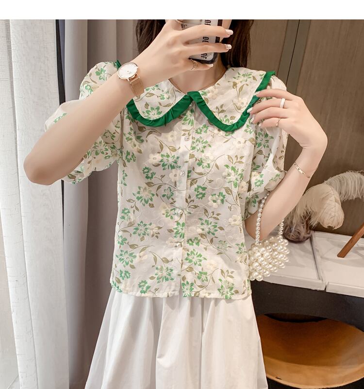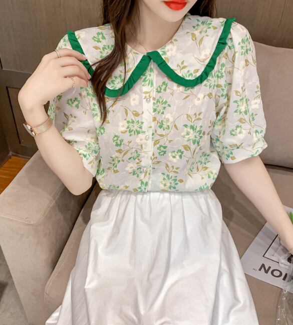 花柄ブラウス オレンジ グリーン 春カラー 大きいサイズ 小さいサイズ トップス シャツ ブラウス 袖あり 半袖 ラウンドネック 襟付き かわいい 大人可愛い おしゃれ お洒落 清楚 ラブリー キュート ガーリー 個性的 エレガント 存在感 爽やか 柄 花柄 小花柄 フラワー 春 夏 秋 ロングシーズン 10代 20代 30代 レディース 女性用 女の子 学生 デート お出かけ 女子会 お茶会 ランチ ショッピング 着回し 普段使い お揃い 双子 韓国 韓国系 モテ インスタ映え S M L XL