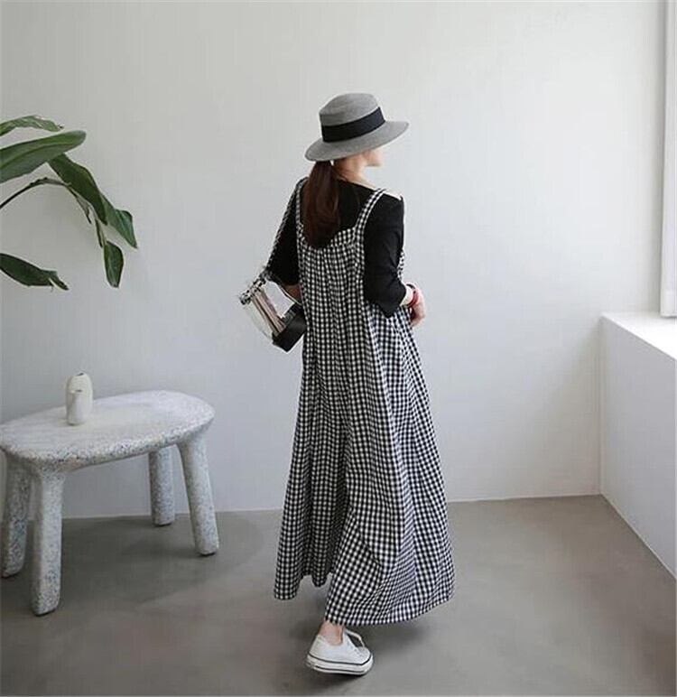 ゆったり 格子柄 サロペット ボトムス オールインワン ワイドパンツ ロング ロング丈 ノースリーブ ラウンドネック ワイド かわいい 大人可愛い カジュアル 大人 おしゃれ 大人女子 こなれ感 ラフ メンズライク ボーイッシュ ルーズ 個性的 存在感 抜け感 チェック柄 夏 10代 20代 30代 レディース ママ マタニティ 学生 通学 お出かけ 公園デビュー 休日 着回し 普段使い 重ね着 韓国系 楽ちん サイズ M L XL 大きいサイズ 大きめ ゆる サイズ 色展開 白 ホワイト 黒 ブラック