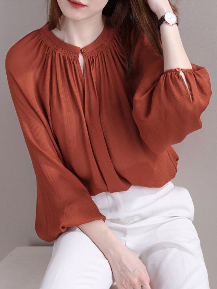トップス シャツ ブラウス 袖あり 7分袖 七分袖 ランタンスリーブ ラウンドネック ワイド シフォン かわいい 大人可愛い きれいめ シンプル カジュアル 大人 上品 おしゃれ お洒落 レトロ アジアン 大人女子 こなれ感 とろみ感 抜け感 無地 春 夏 誕生日 10代 20代 30代 40代 オフィス ビジネス OL 通勤 学生 通学 デート お出かけ 女子会 休日 イベント リゾート ホテル レストラン 韓国 韓国系 オルチャン ファッション コーデ スタイル 楽ちん モテ 定番 トレンド