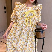 パフスリーブワンピース 花柄ワンピース フリルワンピース スカート ワンピース プルオーバー ロングスカート フレアスカート 膝下 ミモレ ミモレ丈 ロング ロング丈 7分丈 ミディアム丈 袖あり 半袖 5分袖 五分袖 パフスリーブ Uネック ラウンドネック ワイド Aライン フリル リボン ウエストリボン 切り替えデザイン ハイウエスト かわいい 大人可愛い カジュアル おしゃれ お洒落 大人可愛い 大人女子 こなれ感 ラブリー キュート ガーリー 個性的 主役級 存在感