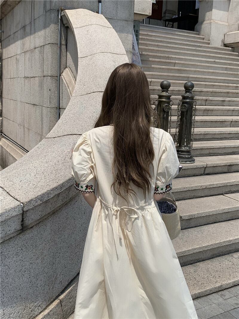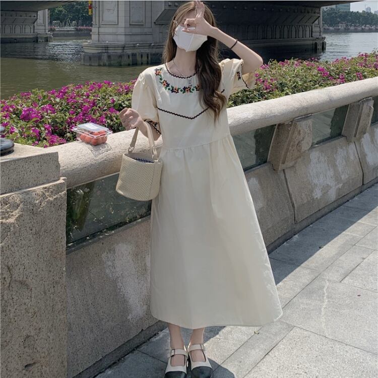 カジュアルワンピース 刺繍ワンピース スカート ワンピース プルオーバー ロングスカート フレアスカート 膝下 ミモレ ミモレ丈 ロング ロング丈 7分丈 ミディアム丈 袖あり 半袖 5分袖 五分袖 ボリューム袖 パフスリーブ フレア セミフレア Aライン 刺繍 リボン ベルト ハイウエスト かわいい 大人可愛い カジュアル おしゃれ お洒落 レトロ アジアン エキゾチック 大人可愛い 大人女子 こなれ感 ガーリー ルーズ エレガント 柄 花柄 小花柄 フラワー 春 夏
