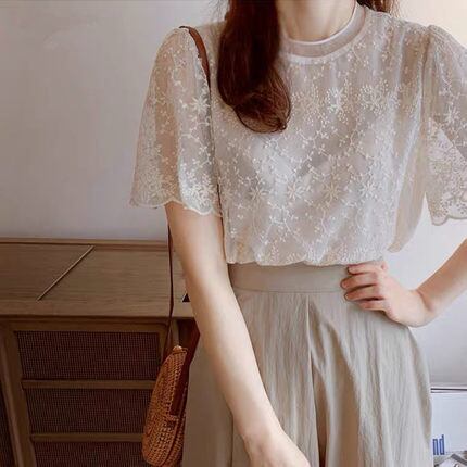 大きいサイズ 小さいサイズ トップス シャツ ブラウス 白シャツ 白トップス ミニワンピ 袖あり 半袖 ラウンドネック 襟なし レース 刺繍 透け感 かわいい 大人可愛い きれいめ シンプル 大人 上品 おしゃれ お洒落 清楚 大人女子 こなれ感 ラフ ラブリー キュート ガーリー ナチュラル 爽やか スマート 無地 春 夏 10代 20代 30代 40代 レディース 女性用 学生 デート お出かけ 女子会 休日 お茶会 ランチ ショッピング 着回し 普段使い モテ S M L XL ホワイト