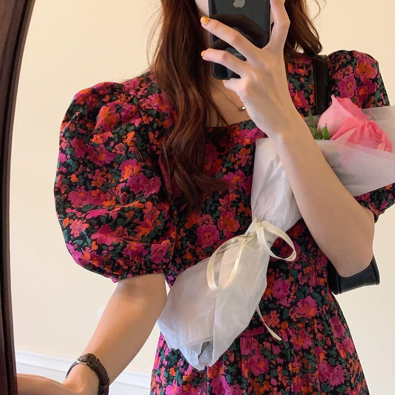 花柄ワンピース ワンピース ロングワンピース 膝下 ロング ロング丈 袖あり 半袖 パフスリーブ スクエアネック 襟なし Aライン ウエストマーク ウエストリボン バックリボン 大人可愛い きれいめ 大人 上品 おしゃれ お洒落 レトロ 大人女子 ラブリー キュート ガーリー 個性的 エレガント 主役級 存在感 シック 柄 花柄 小花柄 フラワー 春 夏 秋 ロングシーズン 10代 20代 30代 レディース 女性用 デート お出かけ 女子会 休日 パーティー ホテル レストラン お呼ばれ お茶会