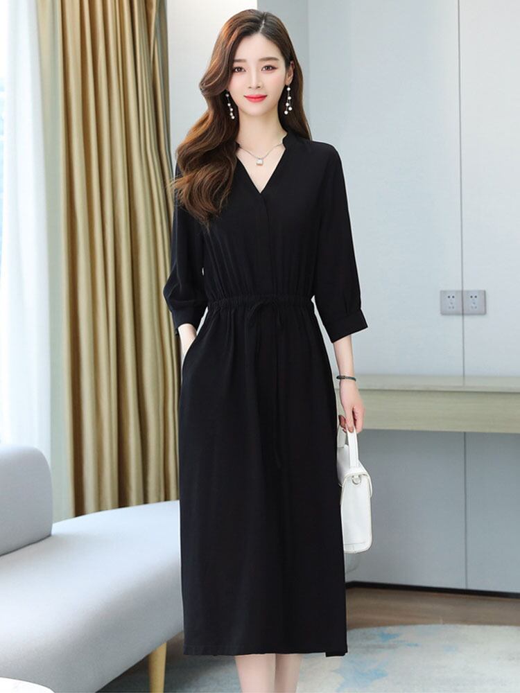 魅力的 ワンピース シャツ ブラウス シャツワンピース フレアワンピース 膝丈 ひざ丈 袖あり 7分袖 七分袖 Vネック フレア タイト ストレート Iライン シフォン ウエストマーク かわいい 大人可愛い きれいめ シンプル 大人 上品 おしゃれ お洒落 レトロ 無地 春 夏 秋 誕生日 入学式 入園式 結婚式 二次会 母の日 10代 20代 30代 40代 オフィス ビジネス OL デート お出かけ 女子会 パーティー イベント ホテル レストラン 韓国 韓国系 オルチャン ファッション コーデ