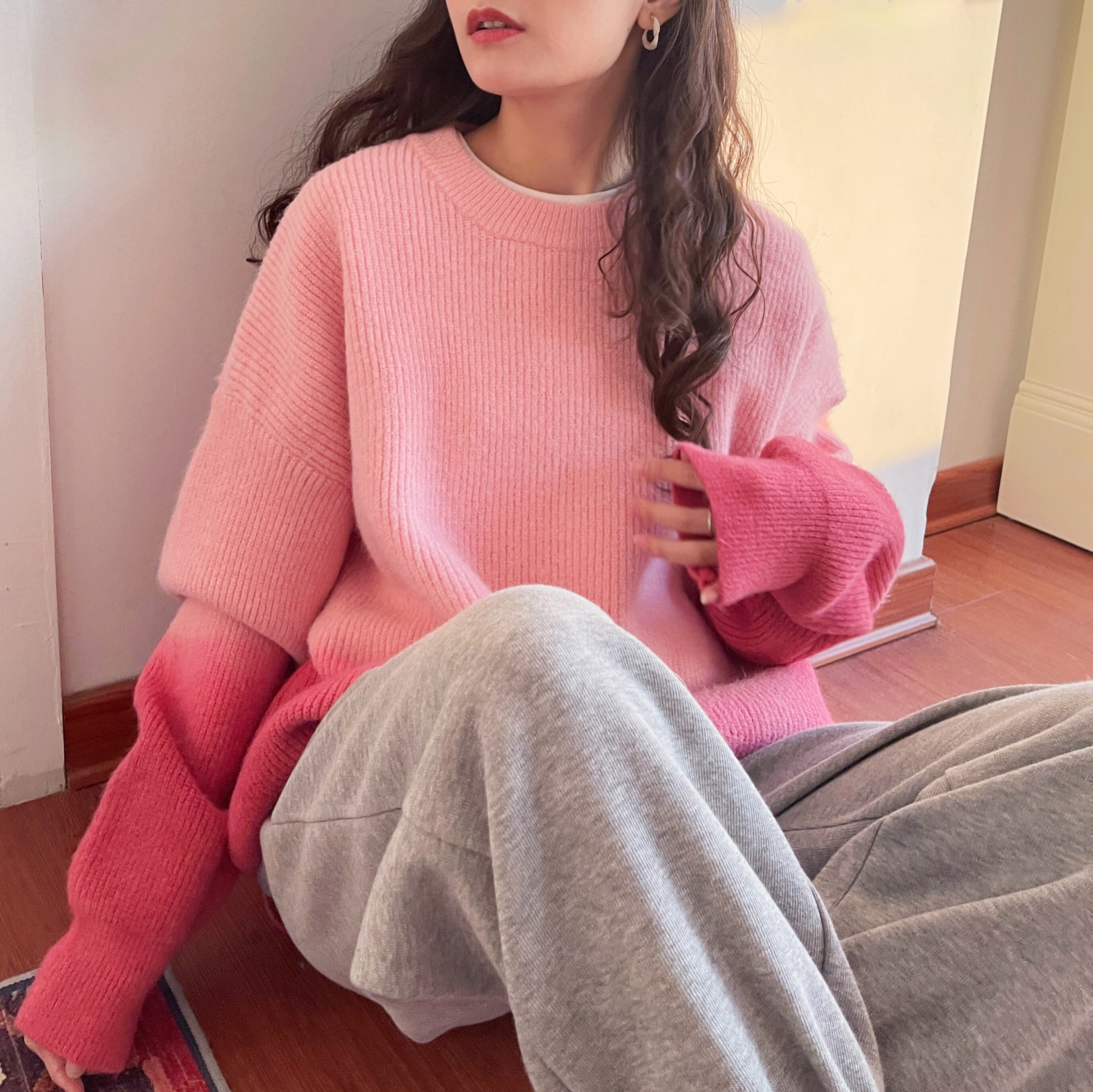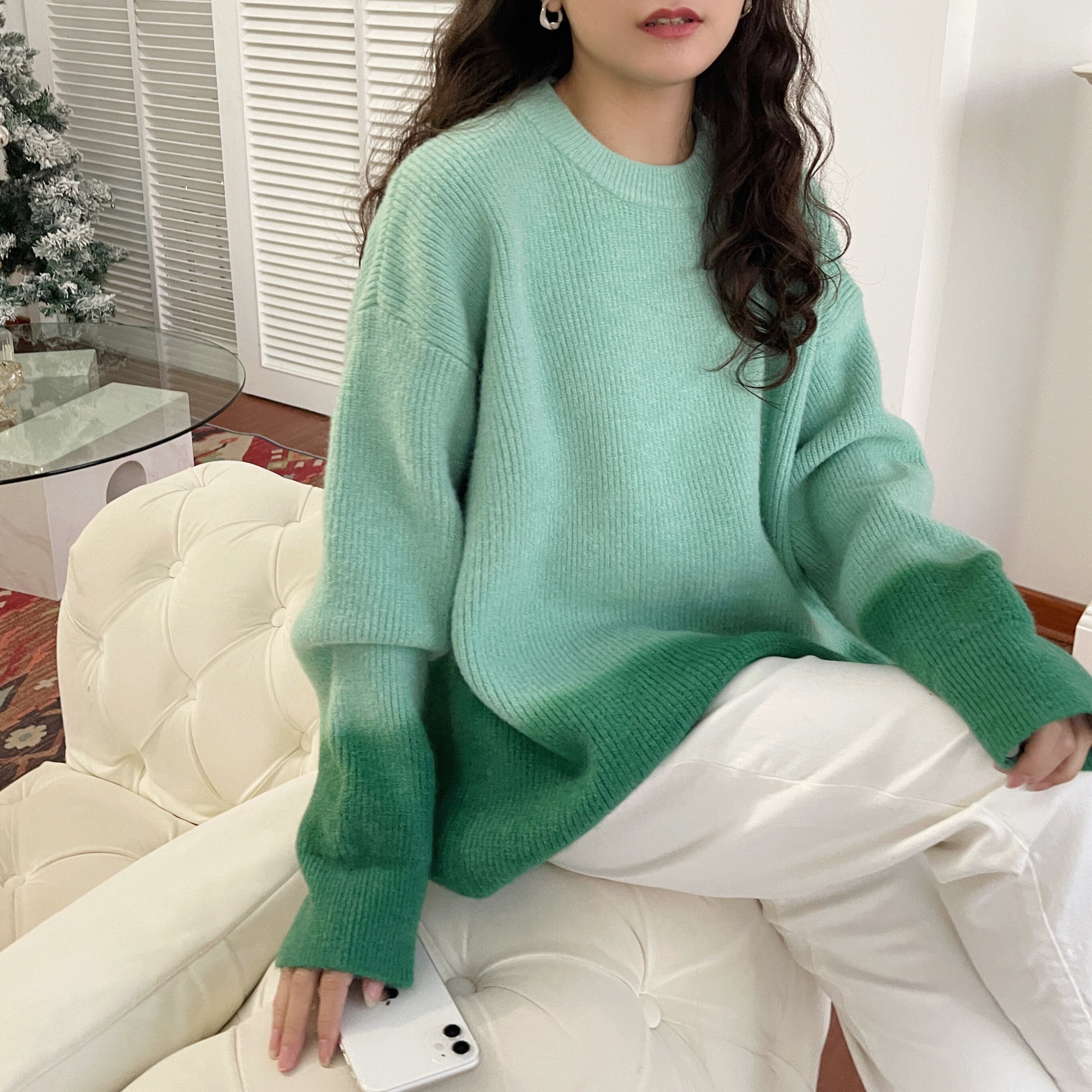 絞り染めのがグラデーションが綺麗なラウンドネックセーター