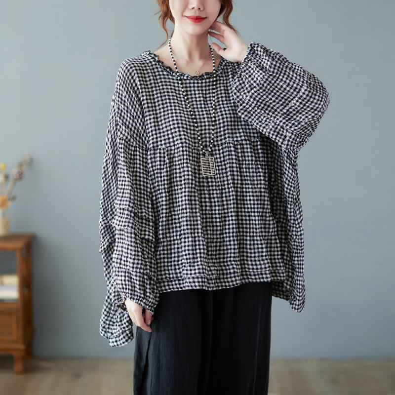 個性的 トップス シャツ ブラウス 袖あり 長袖 ボリューム袖 Uネック 襟なし ペプラム かわいい 大人可愛い シンプル カジュアル 大人 おしゃれ 大人女子 こなれ感 ラフ キュート ガーリー ルーズ 個性的 存在感 とろみ感 チェック柄 格子柄 春 秋 10代 20代 30代 40代 50代 レディース ママ マタニティ デート お出かけ 公園デビュー 女子会 お泊まり 休日 アウトドア イベント リゾート 旅行 着回し 普段使い コーデ スタイル 楽ちん 体系カバー 定番 フリーサイズ 白 黒