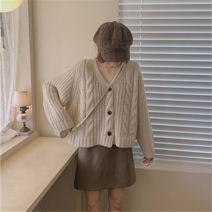 ツーピース ニットカーディガン ミニスカート アプリコット トップス スカート カーディガン ミニ丈 ショート丈 膝上 袖あり 長袖 ボリューム袖 萌袖 Vネック 襟なし ハイウエスト 前開き 伸縮性 ボタン ニット かわいい おしゃれ お洒落 ラブリー キュート ガーリー 存在感 無地 春 秋 冬 ロングシーズン 10代 20代 30代 レディース 女性用 女の子 学生 デート お出かけ 女子会 休日 レストラン お茶会 ランチ ショッピング 着回し 普段使い 重ね着 韓国 韓国系 オルチャン 防寒