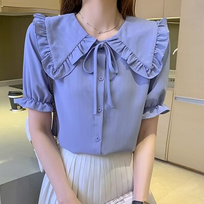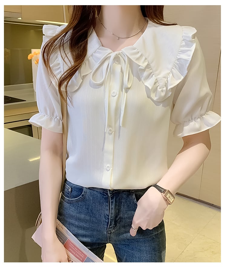 トップス ブラウス 袖あり 半袖 パフスリーブ 襟付き シフォン フリル リボン ボタン 薄手 かわいい 大人可愛い きれいめ シンプル カジュアル 大人 上品 おしゃれ お洒落 ラブリー キュート ガーリー 個性的 主役級 存在感 無地 春 夏 10代 20代 30代 レディース オフィス ビジネス OL 通勤 学生 通学 デート お出かけ 女子会 旅行 ホテル レストラン 着回し 普段使い モテ S M L XL 2XL 白 ホワイト 赤 レッド