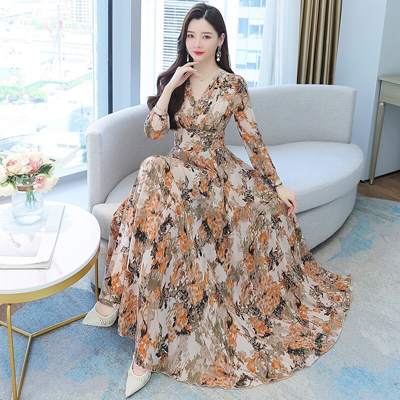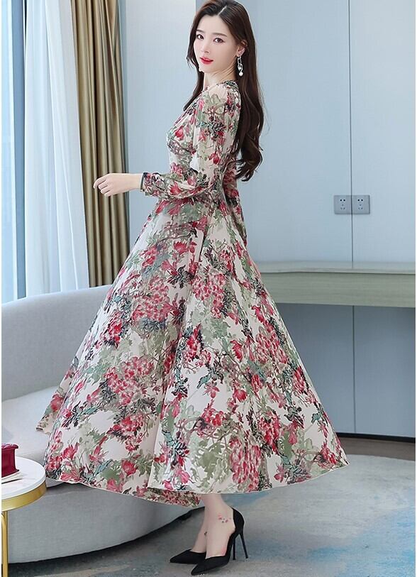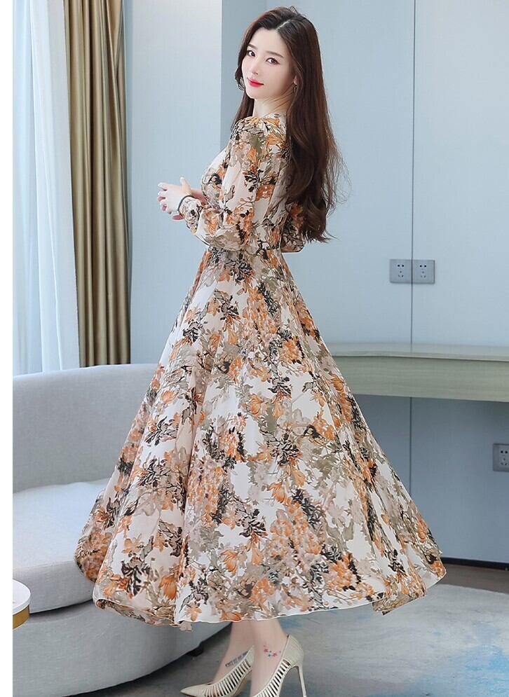 花柄 ドレス ワンピース フレアワンピース ワンピドレス ミモレ丈 ロング丈 長袖 Vネック フレア Aライン 切り替えデザイン シフォン ウエストマーク 透け感 薄手 かわいい 大人可愛い きれいめ 大人 上品 おしゃれ 大人女子 こなれ感 ラブリー キュート エレガント 存在感 フラワー プリント 春 秋 20代 30代 レディース デート お出かけ 女子会 パーティー イベント リゾート 旅行 着回し 普段使い モテ 脚長 サイズ M L XL 2XL 3XL 4XL 色展開 赤 レッド オレンジ
