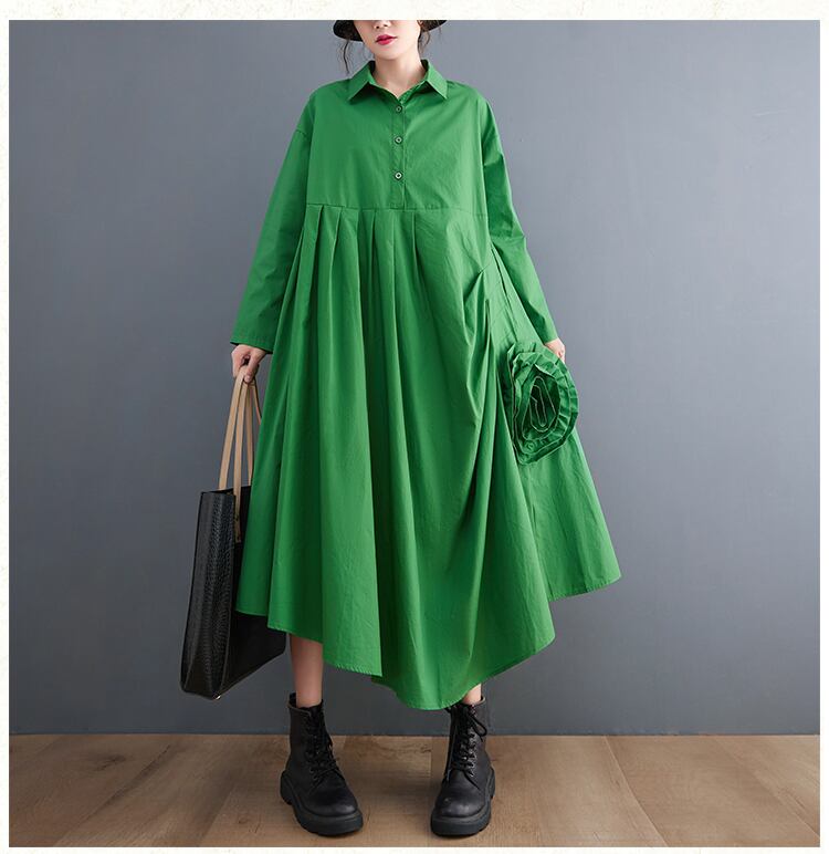 個性的 ワンピース ロングスカート シャツワンピース ミモレ ミモレ丈 ロング丈 長袖 襟付き ワイド Aライン アシンメトリー 切り替えデザイン かわいい 大人可愛い カジュアル 大人 おしゃれ お洒落 レトロ アジアン エスニック 大人女子 こなれ感 ラフ ガーリー ルーズ 存在感 抜け感 無地 春 秋 10代 20代 30代 レディース ママ マタニティ 学生 デート お出かけ 女子会 休日 着回し 普段使い 楽ちん 体系カバー サイズ L XL 大きいサイズ ゆったり ゆる サイズ 色展開 黒 緑