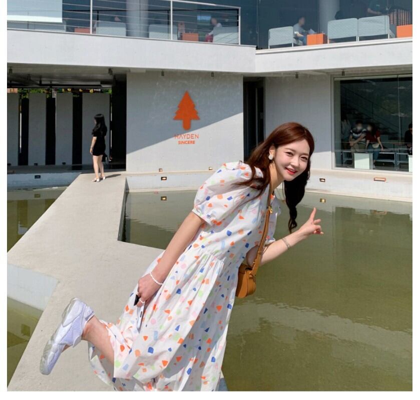 半袖ロングワンピース ロングワンピース パフスリーブワンピース プリントワンピース スカート ワンピース オールインワン ロングスカート フレアスカート 袖あり 半袖 5分袖 五分袖 ボリューム袖 パフスリーブ Uネック ラウンドネック ワイド Aライン ハイウエスト 薄手 かわいい 大人可愛い カジュアル おしゃれ お洒落 レトロ 大人可愛い 大人女子 こなれ感 キュート ガーリー 個性的 主役級 存在感 柄 ドット柄 春 夏 10代 20代 30代 40代 レディース