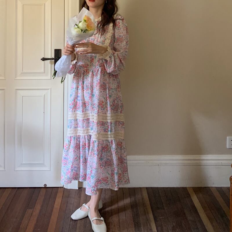 フリーサイズワンピース ゆったり長袖ワンピース 花柄ワンピース フリルワンピース ロングワンピース スカート ワンピース プルオーバー ロングスカート フレアスカート 膝下 ロング ロング丈 9分丈 アンクル丈 7分丈 ミディアム丈 袖あり 長袖 ボリューム袖 Uネック ラウンドネック ワイド Aライン レース フリル ハイウエスト かわいい 大人可愛い カジュアル 上品 おしゃれ お洒落 レトロ 大人可愛い 大人女子 こなれ感 ラブリー キュート ガーリー 個性的 エレガント 主役級