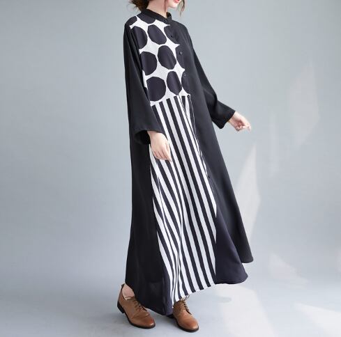ドット ストライプ ワンピース 膝下 ロング ロング丈 ルーズウエスト 袖あり 長袖 ラウンドネック 襟なし ワイド 切り替えデザイン かわいい 大人可愛い きれいめ シンプル カジュアル 大人 上品 おしゃれ お洒落 かっこいい 大人可愛い 大人女子 ラブリー キュート ガーリー ルーズ ドット柄 水玉 ストライプ 秋 冬 10代 20代 30代 40代 レディース 女性用 オフィス ビジネス OL 通勤 学生 通学 デート お出かけ 女子会 休日 ショッピング 着回し 普段使い ファッション コーデ