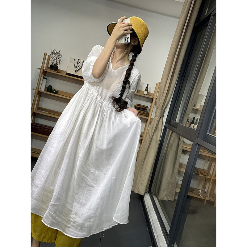 ワンピース フレアワンピース ミモレ ミモレ丈 ロング ロング丈 袖あり 5分袖 五分袖 ボリューム袖 パフスリーブ Vネック 襟なし フレア ストレート Aライン 着やせ レース シフォン ウエストマーク ポケット ハイウエスト ウエストゴム 薄手 かわいい 大人可愛い シンプル カジュアル 大人 おしゃれ レトロ アジアン エスニック ラフ キュート ヨーロッパ風 無地 春 夏 10代 20代 30代 40代 レディース 女性用 ママ マタニティ 着回し 普段使い 楽ちん ホワイト ブラック パープル