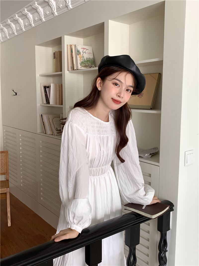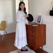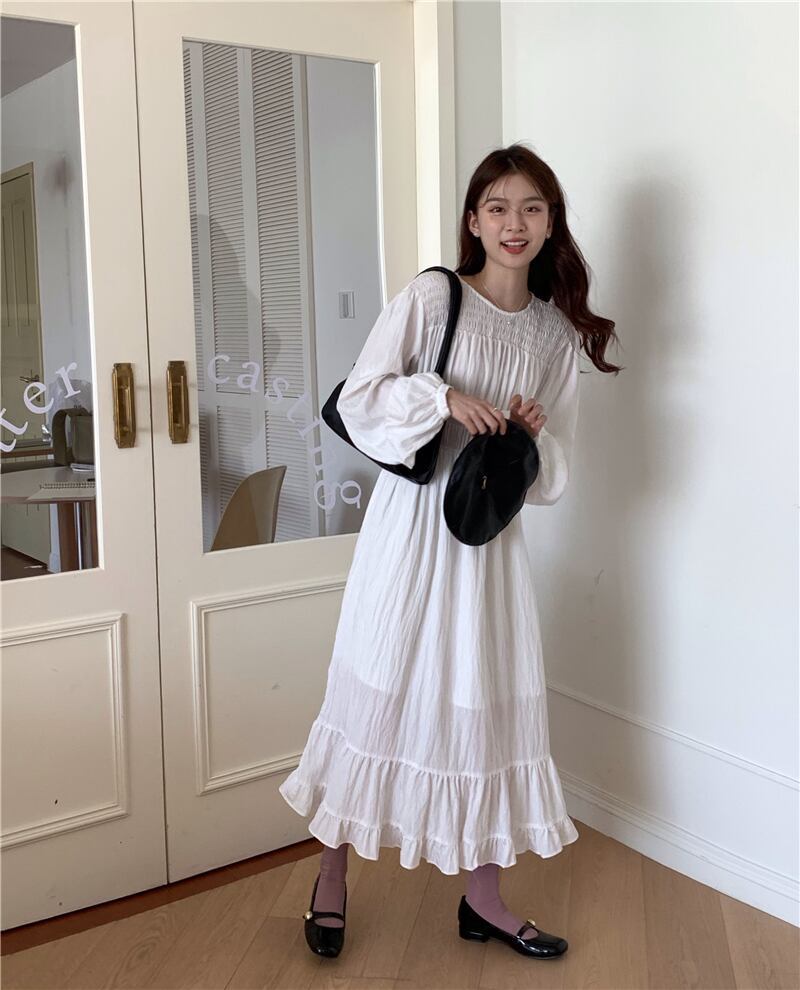 ワンピース ロングスカート フレアワンピース ティアードワンピース ワンピドレス ロング丈 マキシ丈 アンクル丈 長袖 ボリューム袖 パフスリーブ ラウンドネック フレア 切り替えデザイン ウエストリボン 透け感 かわいい 大人可愛い シンプル カジュアル 大人 上品 おしゃれ こなれ感 ラフ ラブリー キュート ガーリー ルーズ 存在感 とろみ感 抜け感 無地 春 10代 20代 レディース 学生 デート お出かけ 女子会 休日 着回し 普段使い モテ ゆったり ゆる 色展開 白 ホワイト 黒 ブラック