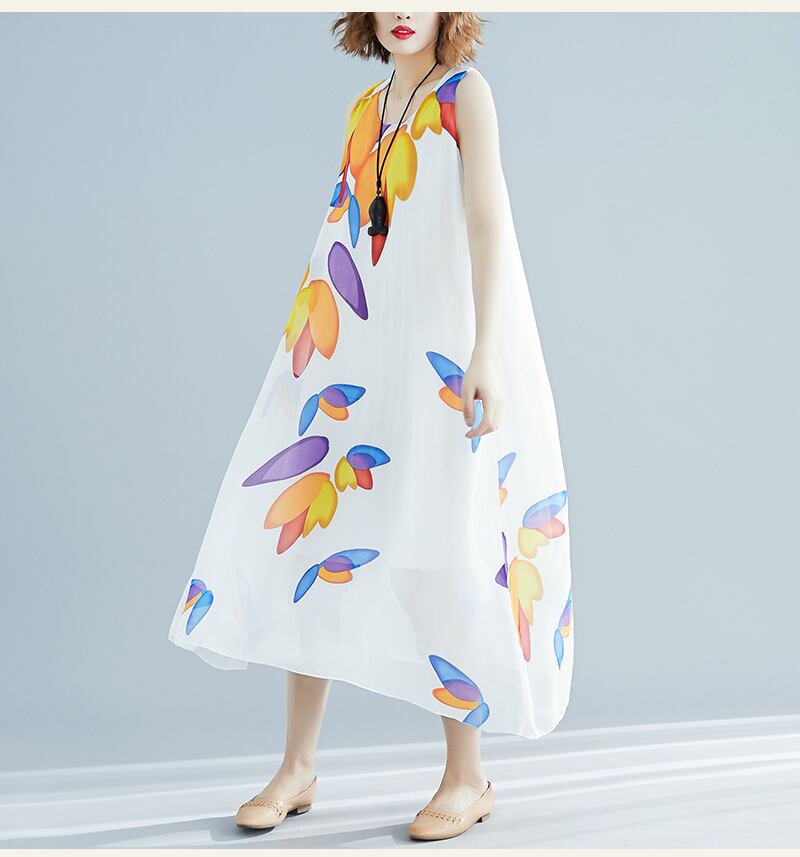 大きいサイズ シフォン 柄 ワンピース プルオーバー ロングスカート フレアワンピース ワンピドレス ミモレ丈 ロング丈 ミディアム丈 ノースリーブ ラウンドネック フレア ワイド Aライン 透け感 かわいい 大人可愛い カジュアル 大人 おしゃれ エスニック こなれ感 ラフ ラブリー キュート ルーズ 花柄 フラワー プリント 夏 10代 20代 30代 レディース ママ マタニティ リゾート 旅行 海 プール 着回し 普段使い 体系カバー ゆったり ゆる サイズ 色展開 白 ホワイト 黄色 イエロー