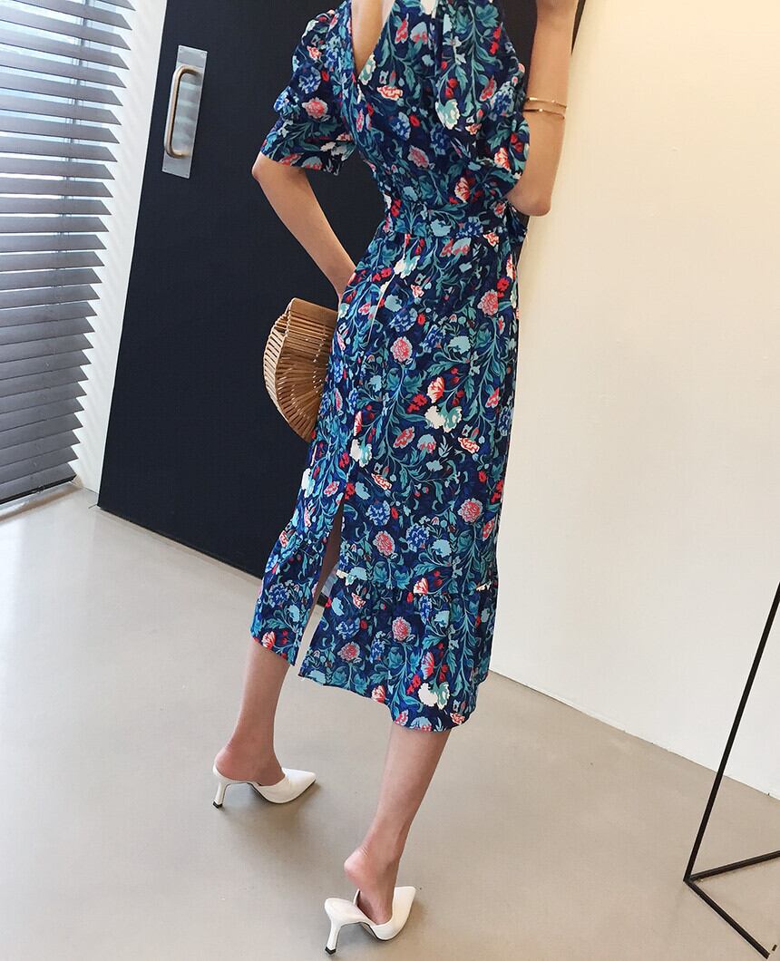 フィッシュテールロングスカート パフスリーブワンピース レトロワンピース 花柄ロングワンピース スカート ワンピース プルオーバー ロングスカート 膝下 ロング ロング丈 7分丈 ミディアム丈 袖あり 半袖 5分袖 五分袖 パフスリーブ Uネック ラウンドネック タイト 細身 Aライン マーメイド ウエストマーク ウエストリボン バックスリット ハイウエスト かわいい 大人可愛い きれいめ カジュアル 大人 上品 おしゃれ お洒落 レトロ 大人可愛い 大人女子 こなれ感 クール