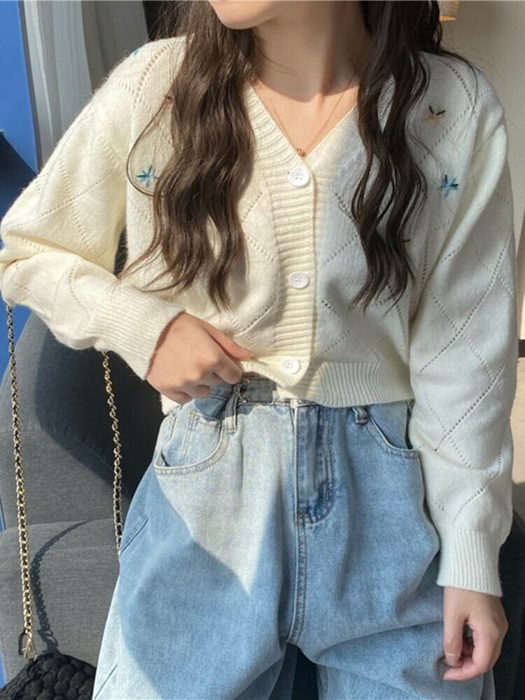 トップス ニットソー カーディガン ショート丈 レギュラー丈 長袖 レギュラー袖 Vネック 襟なし ストレート 刺繍 前開き 大人可愛い カジュアル お洒落 ラブリー キュート ルーズ シック 柄 春 秋 誕生日 母の日 クリスマス バレンタイン 10代 20代 30代 女性用 ママ OL 通勤 学生 通学 デート お出かけ 公園デビュー 女子会 お泊まり 休日 リゾート 旅行 高原 ガーデン レストラン 着回し 重ね着 コーデ 楽ちん 暖かい モテ ギフト 安い S M L XL ミルキー 青