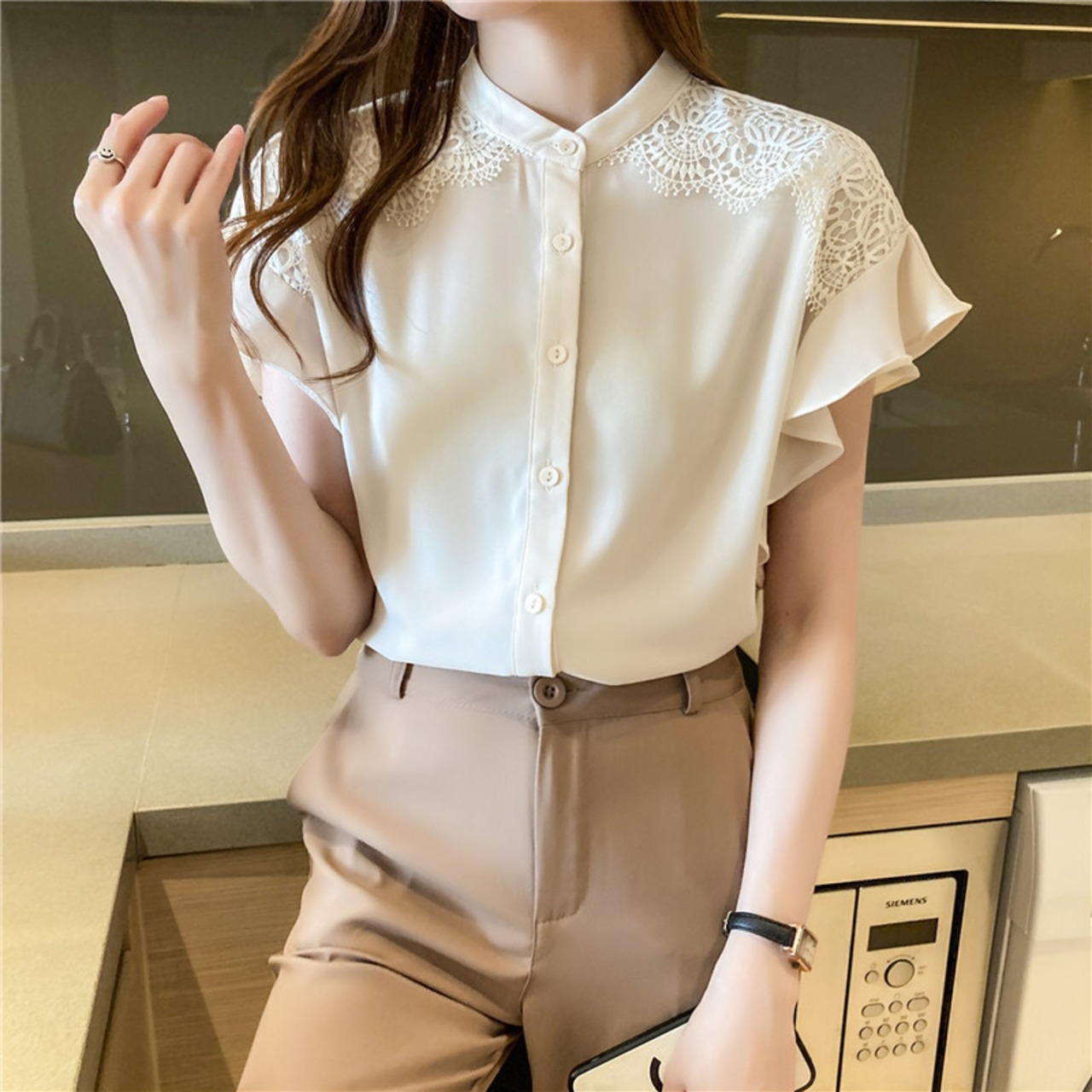 半袖レースシャツ シフォンブラウス トップス シャツ ブラウス 白シャツ 白トップス 袖あり 半袖 5分袖 五分袖 Uネック ハイネック スリム 細身 ストレート Iライン レース シフォン フリル 前開き かわいい 大人可愛い きれいめ シンプル 大人 上品 おしゃれ お洒落 大人可愛い 大人女子 こなれ感 エレガント 主役級 存在感 フォーマル 無地 春 夏 秋 冬 オールシーズン シーズンレス 20代 30代 40代 レディース 女性用 ママ ビジネス OL 通勤