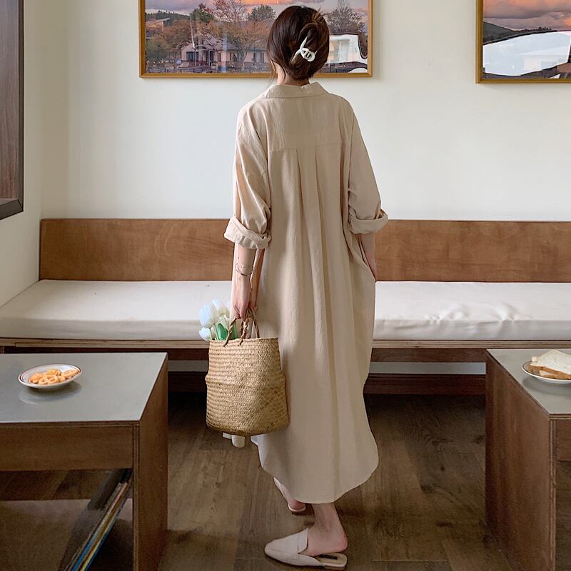 ワンピース シャツ シャツワンピース フレアワンピース ミモレ ミモレ丈 袖あり 長袖 プルオーバー かわいい 大人可愛い カジュアル おしゃれ お洒落 こなれ感 ラフ 個性的 存在感 無地 春 夏 秋 冬 20代 30代 40代 50代 60代 レディース 女性用 OL 通勤 学生 通学 デート お出かけ 女子会 休日 ジム 着回し 普段使い お揃い 双子 コーデ スタイル 楽ちん S M L XL 2XL