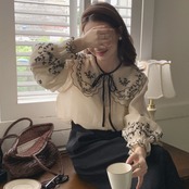 レディース トップス ブラウス 刺繍 シフォン フリル リボン 大人可愛い カジュアル 大人可愛い 花柄 春 秋 KS10023