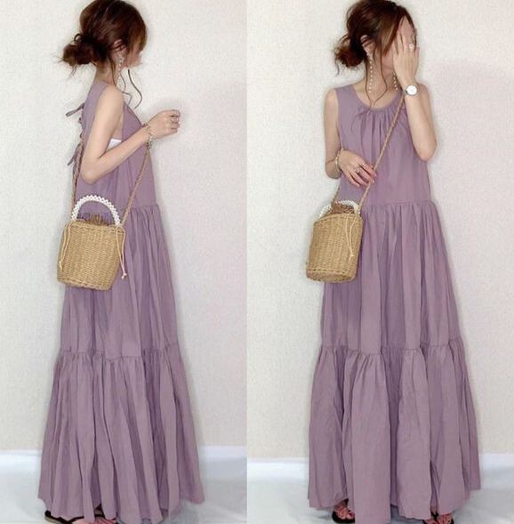 ワンピース フレアワンピース ロング ロング丈 袖なし ノースリーブ フレア プルオーバー かわいい 大人可愛い カジュアル おしゃれ お洒落 こなれ感 ラフ 個性的 存在感 無地 春 夏 秋 20代 30代 40代 50代 60代 レディース 女性用 OL 通勤 学生 通学 デート お出かけ 女子会 休日 ジム 着回し 普段使い お揃い 双子 コーデ スタイル 楽ちん フリーサイズ ブラック 紫 パープル