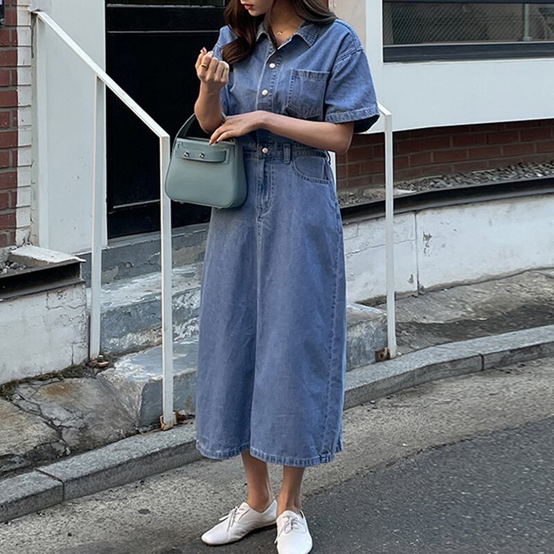 ワンピース デニムワンピース ロング ロング丈 袖あり 半袖 切り替えデザイン プルオーバー デニム かわいい 大人可愛い カジュアル おしゃれ お洒落 こなれ感 ラフ 個性的 存在感 無地 春 夏 秋 20代 30代 40代 50代 60代 レディース 女性用 OL 通勤 学生 通学 デート お出かけ 女子会 休日 ジム 着回し 普段使い お揃い 双子 コーデ スタイル 楽ちん S M L