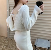 カシュクール ワンピース ミニ丈 長袖 スリム ニット きれいめ 大人 おしゃれ セクシー 主役級 デート 韓国系 ファッション 美脚 白 ホワイト 黒 ブラック 灰色 グレー AS10100