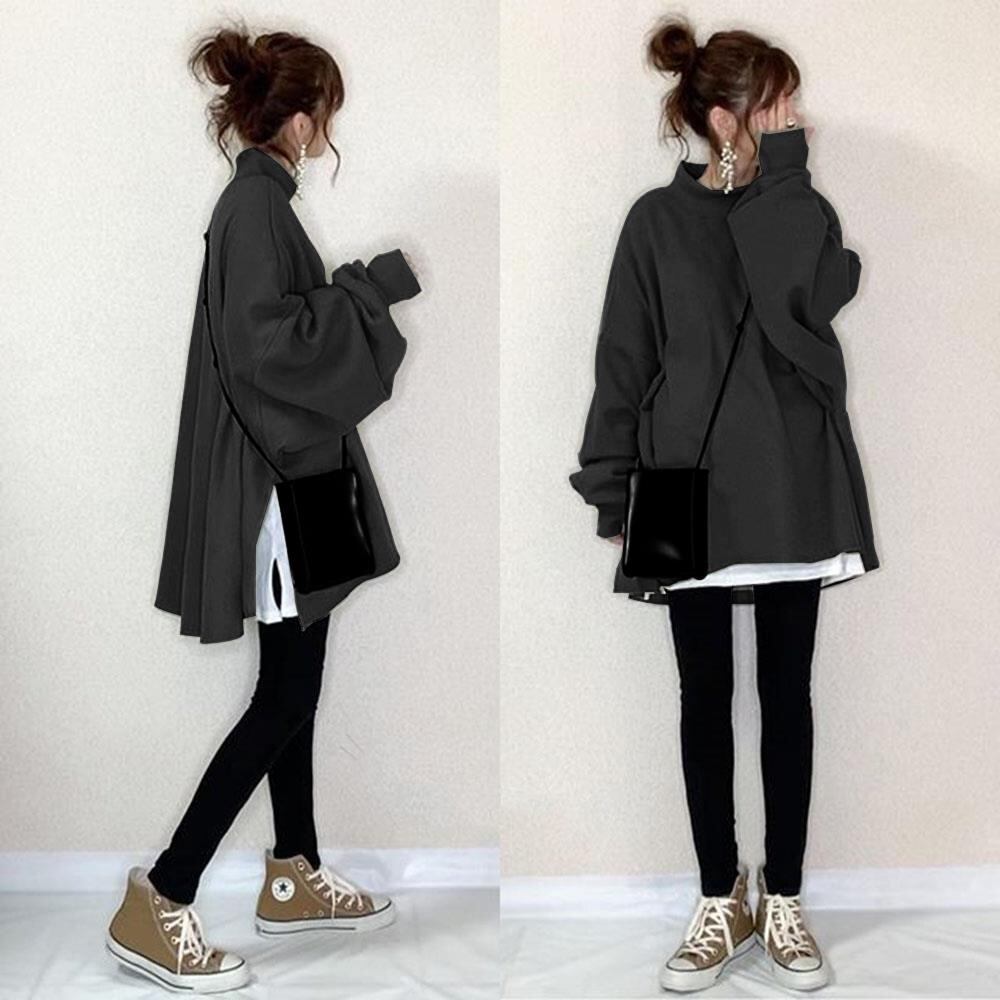 フェイクツーピース トップス セーター プルオーバー トレーナー ロング ロング丈 長袖 タートルネック スタンドカラー ワイド サイドスリット 裏起毛 かわいい 大人可愛い シンプル カジュアル 大人 おしゃれ 大人女子 こなれ感 ラフ キュート ルーズ 存在感 抜け感 無地 秋 冬 10代 20代 30代 レディース 学生 通学 お出かけ 公園デビュー 休日 着回し 普段使い 韓国系 楽ちん 暖かい 防寒 モテ 体系カバー フリーサイズ ゆったり ゆる サイズ 色展開 黒 赤 青 緑 グレー 黄色