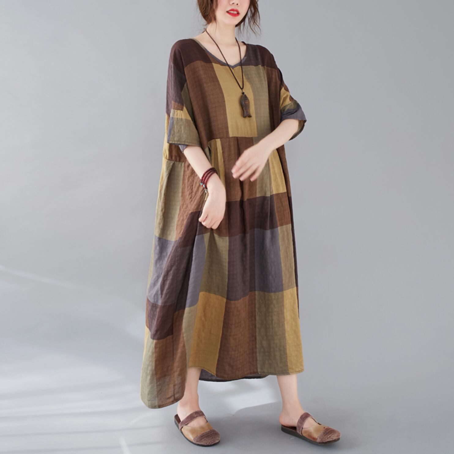 綺麗め ワンピース フレアスカート ロング ロング丈 袖あり 5分袖 五分袖 Vネック フレア ワイド Aライン シフォン フリル かわいい 大人可愛い きれいめ シンプル カジュアル 大人 上品 おしゃれ お洒落 レトロ 大人女子 こなれ感 ラフ スポーティー ルーズ クール とろみ感 抜け感 チェック柄 春 夏 20代 30代 40代 50代 60代 レディース ママ デート お出かけ 公園デビュー 海 韓国 韓国系 オルチャン ファッション コーデ スタイル 楽ちん モテ 体系カバー ゆったり ゆる