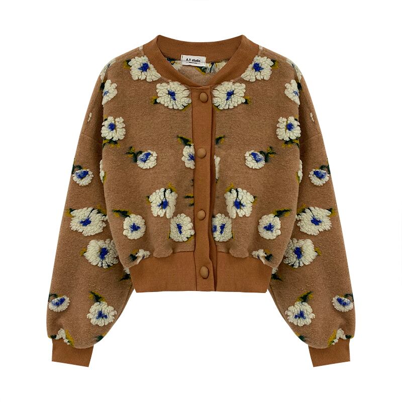 花柄 トップス カーディガン ミニ ミニ丈 ショート ショート丈 長袖 パフスリーブ ラウンドネック ストレート もこもこ モコモコ 前開き ボア 厚手 かわいい 大人可愛い カジュアル 大人 おしゃれ 大人女子 こなれ感 ラフ ラブリー キュート ガーリー 個性的 存在感 とろみ感 抜け感 柄 花柄 小花柄 フラワー 春 秋 10代 20代 レディース 学生 通学 デート お出かけ 公園デビュー 女子会 休日 着回し 普段使い 韓国系 ファッション 暖かい モテ フリーサイズ 色展開 ブラック ブラウン