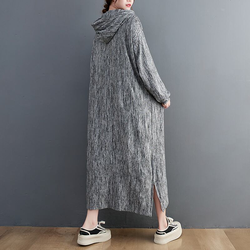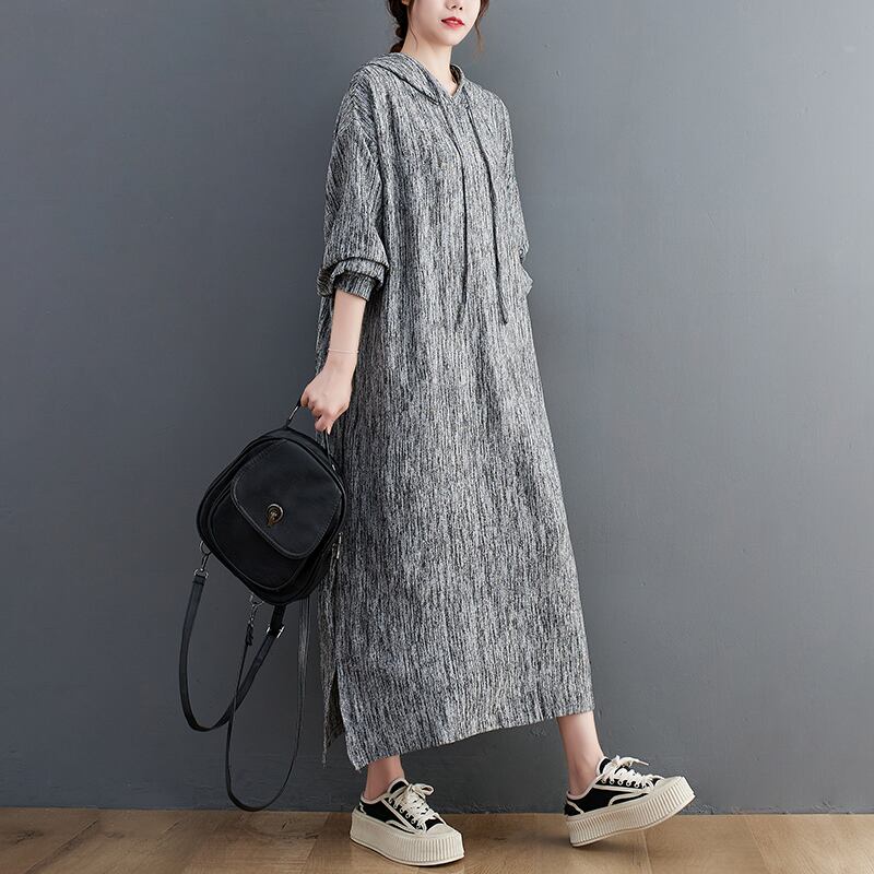 ワンピース ルームウェア フーディー 部屋着 ロング丈 マキシ丈 袖あり 長袖 Vネック 襟なし ワイド Aライン サイドスリット フード付き かわいい 大人可愛い シンプル カジュアル 大人 おしゃれ かっこいい 大人女子 ラフ マニッシュ ルーズ モダン 主役級 存在感 無地 秋 冬 10代 20代 30代 40代 50代 レディース ママ マタニティ お出かけ 公園デビュー 女子会 お泊まり 休日 楽ちん 体系カバー M L XL 2XL 3XL 大きいサイズ ゆったり グレー カーキ 大人カラー