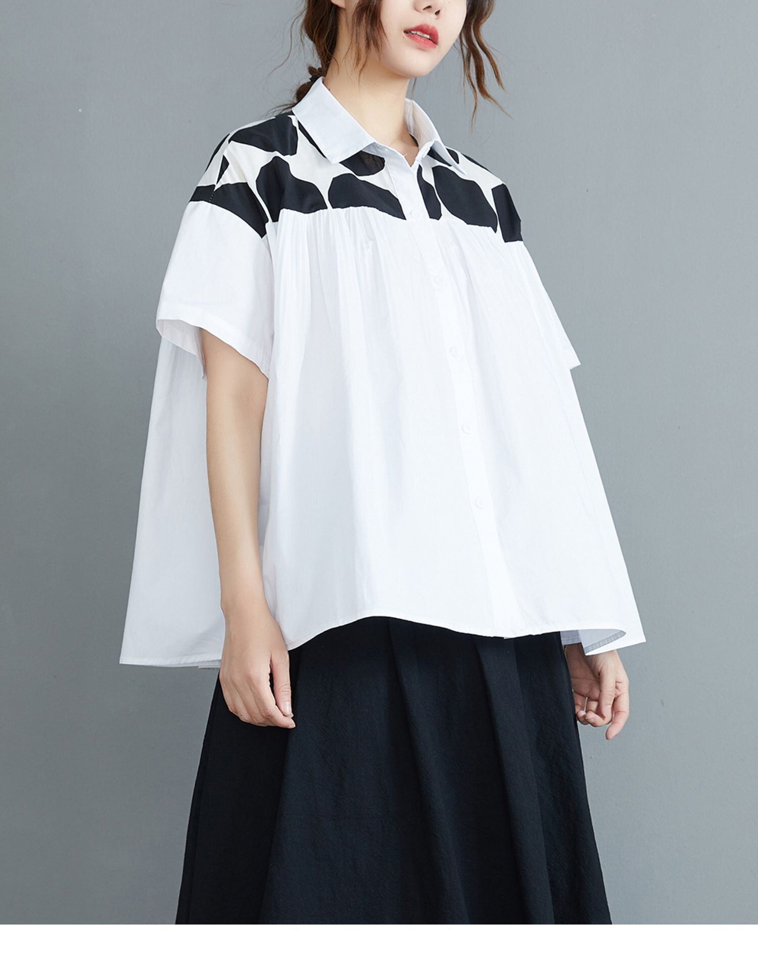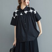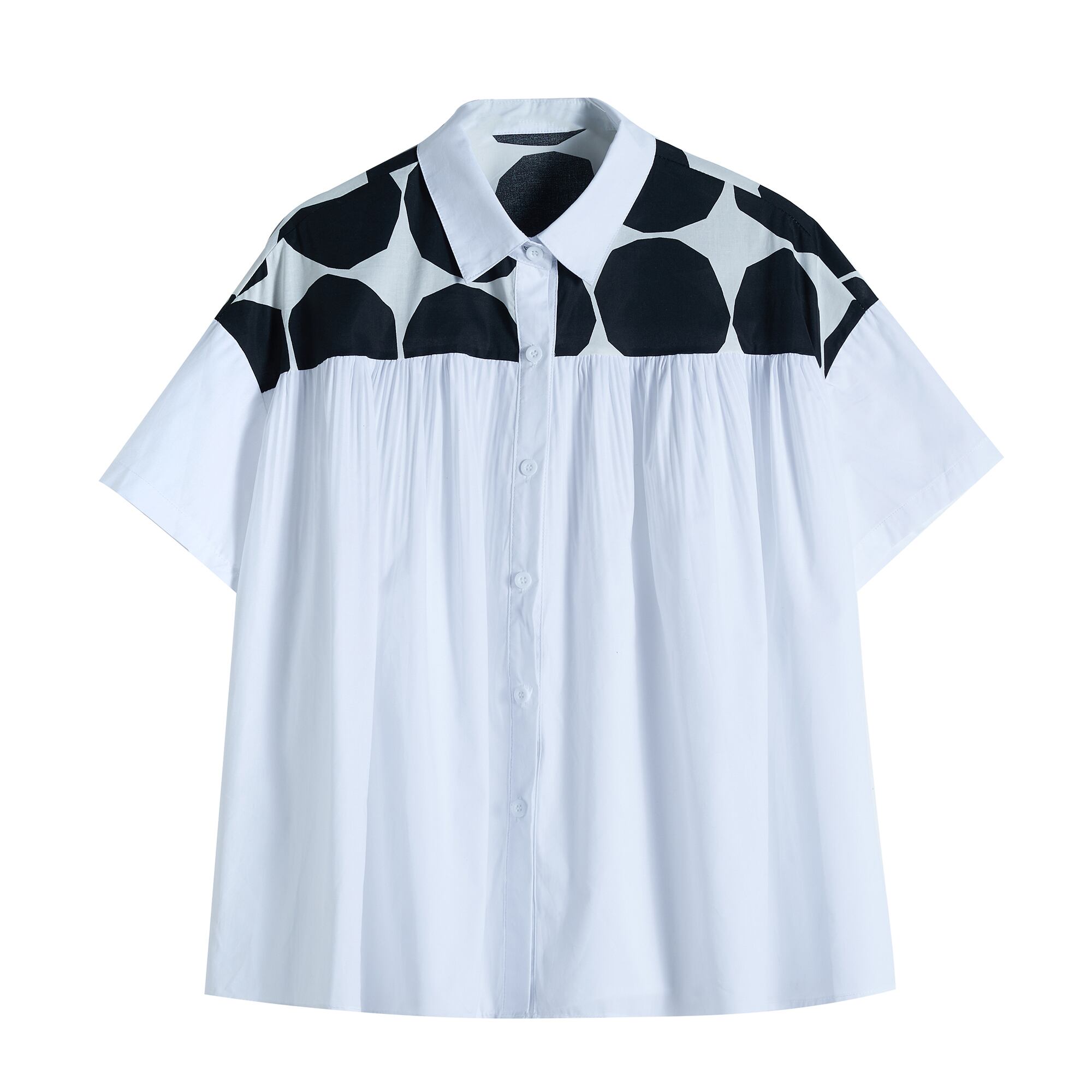 トップス ブラウス レギュラー丈 袖あり レギュラー袖 襟付き ポロカラー Aライン 薄手 かわいい きれいめ カジュアル 大人 おしゃれ レトロ 大人女子 こなれ感 ラブリー キュート 個性的 エレガント 存在感 とろみ感 柄 水玉 夏 誕生日 母の日 OL 通勤 通学 デート お出かけ 公園デビュー 女子会 お泊まり 休日 アウトドア イベント リゾート 旅行 海 プール 高原 レストラン ショッピング スタイル 楽ちん 体系カバー プレゼント 安い インスタ映え L XL 大きめ ゆる 黒 白