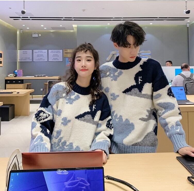 ユニセックス カップル トップス ニットソー セーター プルオーバー 長袖 ラウンドネック ストレート ワイド もこもこ かわいい 大人可愛い カジュアル 大人 おしゃれ かっこいい 大人女子 こなれ感 ラフ メンズライク マニッシュ ボーイッシュ ルーズ 個性的 モード系 主役級 抜け感 柄 ボタニカル プリント 冬 クリスマス 10代 20代 ペア 男女兼用 学生 デート お出かけ 着回し 普段使い お揃い コーデ 暖かい 防寒 サイズ S M L XL 2XL ゆったり ゆる 色展開 青 ブルー