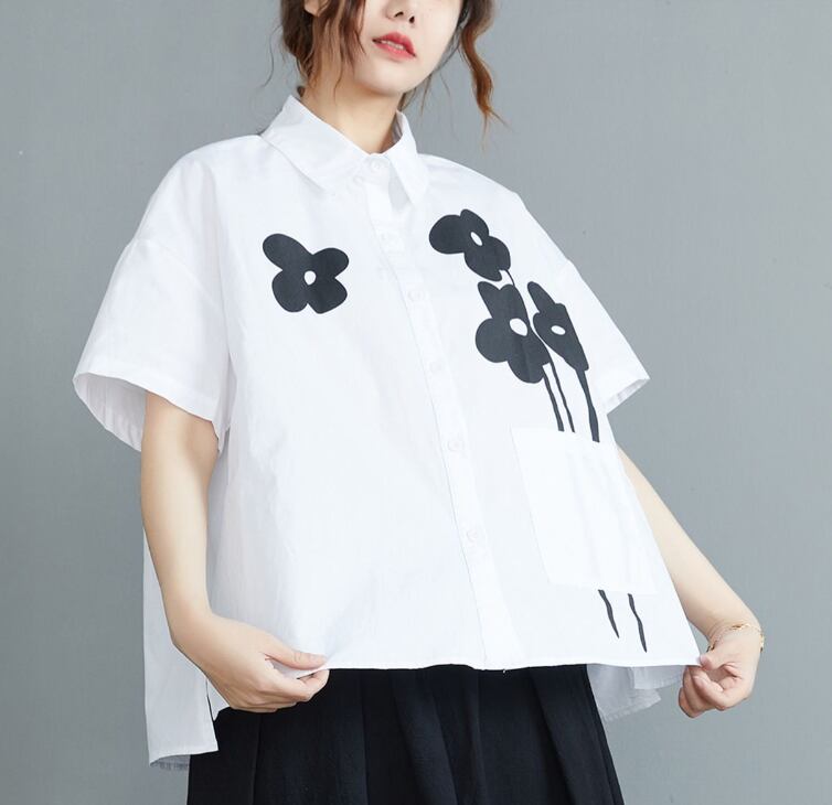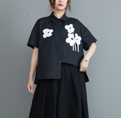 花柄シャツ モノトーンカラー ブラック ホワイト 大きいサイズ トップス シャツ ブラウス 白シャツ 白トップス 袖あり 半袖 Vネック 襟付き 前開き ボタン かわいい シンプル おしゃれ お洒落 レトロ ラブリー キュート ガーリー 個性的 存在感 柄 花柄 フラワー 春 夏 秋 ロングシーズン 10代 20代 30代 レディース 女性用 ママ 女の子 学生 デート お出かけ 公園 女子会 休日 アウトドア お茶会 ランチ ショッピング 着回し 普段使い 重ね着 L XL ゆったり ゆる