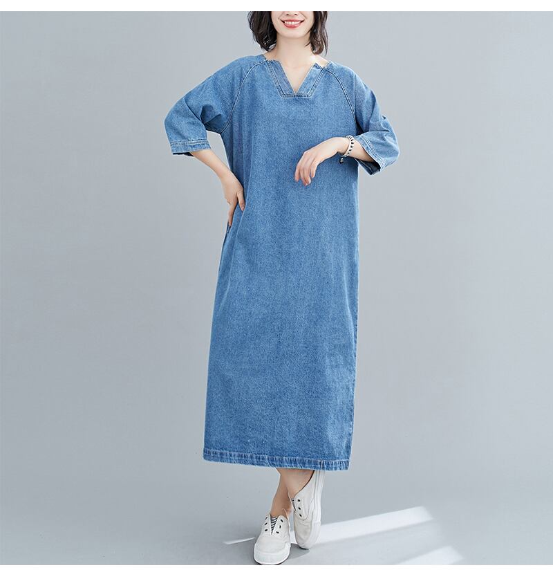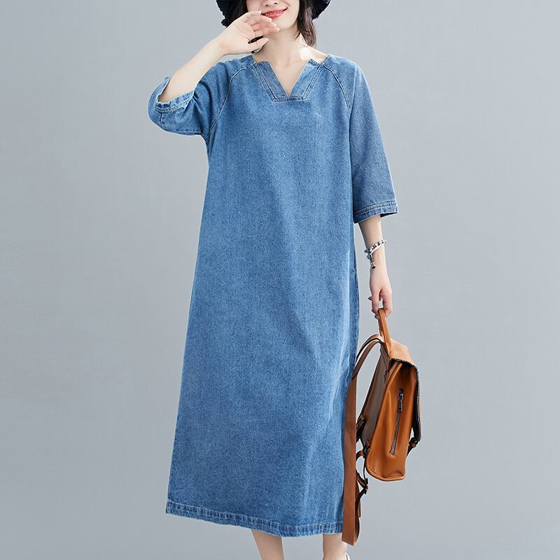 デニムワンピース ブルー 大きいサイズ ワンピース ミモレ丈ワンピース 膝下 ミモレ ミモレ丈 袖あり 半袖 Vネック 襟なし スリットネック バックリボン スリット デニム ブルーデニム かわいい 大人可愛い シンプル カジュアル おしゃれ お洒落 ラフ ラブリー キュート ガーリー 個性的 爽やか 無地 春 夏 秋 ロングシーズン 10代 20代 30代 レディース 女性用 ママ 女の子 通勤 学生 デート お出かけ 女子会 お茶会 ランチ ショッピング 着回し 普段使い M L XL 2XL