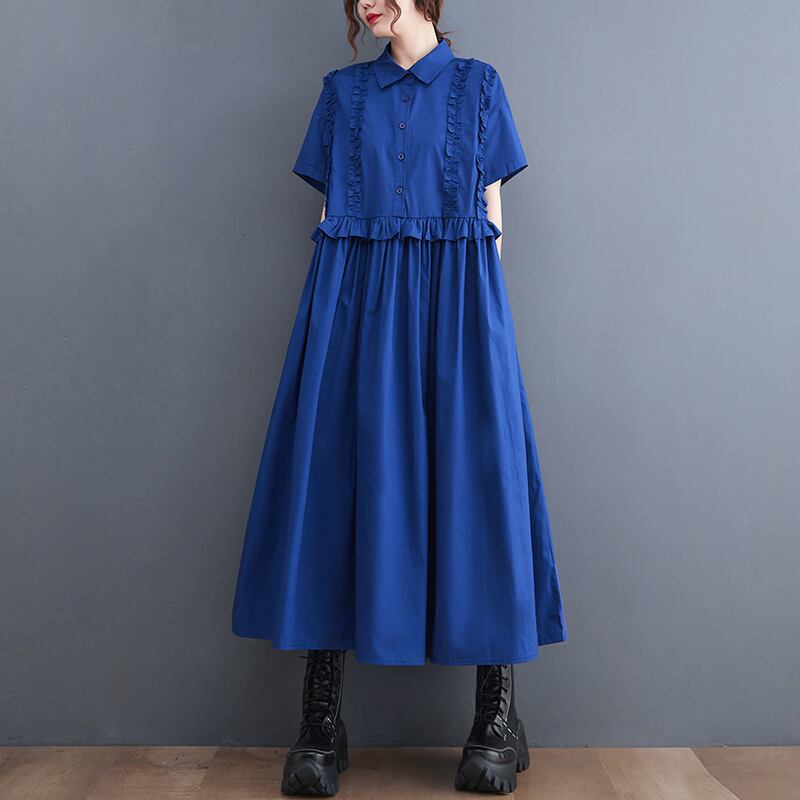 ワンピース シャツワンピース ミモレ丈 袖あり 半袖 襟付き Aライン フリル ポケット かわいい 大人可愛い きれいめ シンプル 大人 上品 おしゃれ 大人女子 こなれ感 キュート 個性的 クール モード系 モダン 主役級 存在感 無地 春 夏 10代 20代 30代 レディース ママ マタニティ OL 通勤 デート お出かけ 女子会 お泊まり 休日 旅行 着回し 普段使い ファッション コーデ スタイル 楽ちん モテ フリーサイズ 色展開 黒 ブラック 青 ブルー 大人カラー カラバリ ビビットカラー