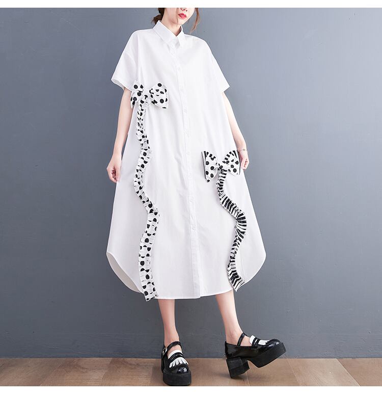 ワンピース ワンピドレス 膝下 ミディアム丈 ミドル丈 袖あり 半袖 レギュラー袖 襟付き ポロカラー フレア ワイド リボン 前開き 薄手 かわいい 大人可愛い カジュアル 大人 おしゃれ お洒落 レトロ ラフ ラブリー キュート ガーリー ルーズ 無地 夏 誕生日 10代 20代 女性用 OL 通勤 学生 通学 デート お出かけ お泊まり 休日 リゾート 旅行 海 プール ホテル レストラン ショッピング ファッション 楽ちん 体系カバー ギフト インスタ映え フレンチ ゆる ワンサイズ 黒 白