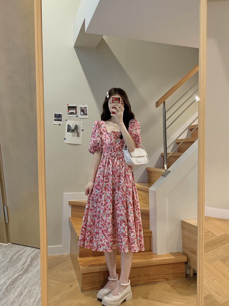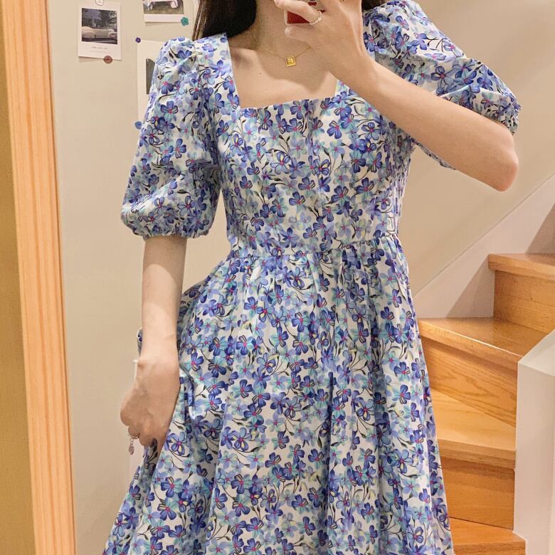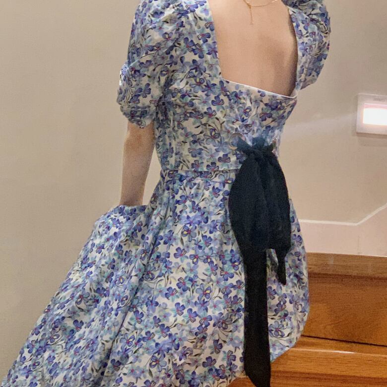 ワンピース フレアワンピース ひざ丈 袖あり 5分袖 パフスリーブ スクエアネック 襟なし フレア ワイド Aライン 切り替えデザイン バックリボン 大人可愛い カジュアル 大人 上品 お洒落 大人女子 こなれ感 ラフ キュート ガーリー 主役級 抜け感 小花柄 フラワー 春 夏 秋 二次会 20代 30代 40代 ママ 通勤 通学 デート お出かけ 女子会 休日 旅行 着回し 普段使い 重ね着 モテ 体系カバー 定番 トレンド 流行 インスタ映え M L XL 2XL 3XL 4XL ブルー ピンク