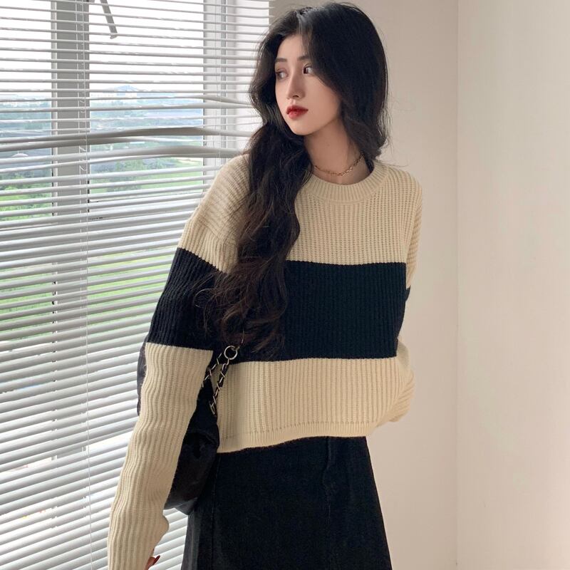 ストライプセーター ゆったりニット トップス セーター プルオーバー 袖あり 長袖 萌袖 Uネック ラウンドネック ワイド Aライン ニット 大人可愛い カジュアル 大人 おしゃれ お洒落 レトロ 大人可愛い 大人女子 こなれ感 ボーイッシュ ガーリー 主役級 存在感 柄 ボーダー ストライプ 秋 冬 10代 20代 30代 レディース 女性用 ママ マタニティ OL 通勤 学生 通学 お出かけ 女子会 お泊まり 休日 普段使い ファッション コーデ スタイル 楽ちん 暖か