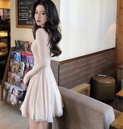 シフォンプリーツ ワンピース ミニ丈 ショート 長袖 ニット 上品 おしゃれ 大人可愛い こなれ感 ラブリー ガーリー デート お出かけ 韓国系 ファッション モテ 美脚 S M L XL 黒 ブラック アプリコット AS10109