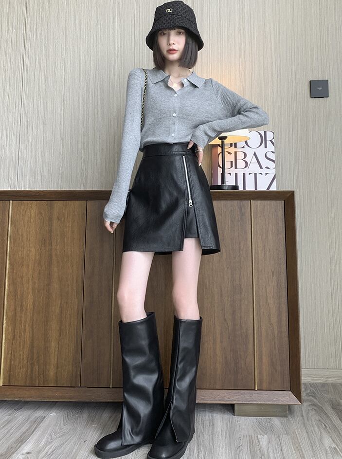 PUレザー スカート ミニ丈 ショート丈 シンプル おしゃれ かっこいい クール セクシー 通勤 通学 韓国系 ファッション 美脚 S M L XL 2XL 黒 ブラック AS10116