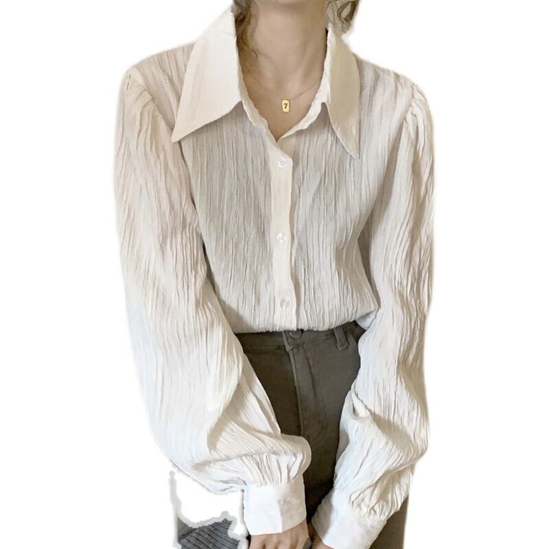 トップス シャツ レギュラー丈 袖あり 長袖 レギュラー袖 襟付き ポロカラー ストレート プリーツ 前開き 薄手 大人可愛い きれいめ シンプル カジュアル 上品 お洒落 レトロ 大人女子 こなれ感 キュート とろみ感 シック 無地 春 秋 誕生日 母の日 10代 20代 30代 40代 レディース ママ OL 通勤 学生 通学 デート お出かけ 女子会 お泊まり 休日 イベント 旅行 ホテル ショッピング 重ね着 モテ ギフト 香港風 フレンチ ゆる ワンサイズ ホワイト 白 青 アプリコット