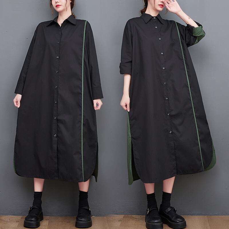 シャツ ワンピース ロングスカート シャツワンピース ミモレ ミモレ丈 ロング ロング丈 長袖 襟付き ワイド Aライン スリット サイドスリット 切り替えデザイン 前開き かわいい 大人可愛い きれいめ シンプル カジュアル 大人 おしゃれ 大人女子 こなれ感 ラフ ルーズ 個性的 存在感 抜け感 無地 春 秋 20代 30代 レディース ママ マタニティ 学生 通学 デート お出かけ 公園デビュー 女子会 休日 着回し 普段使い 楽ちん モテ 体系カバー 大きめ ゆったり ゆる サイズ 色展開 黒