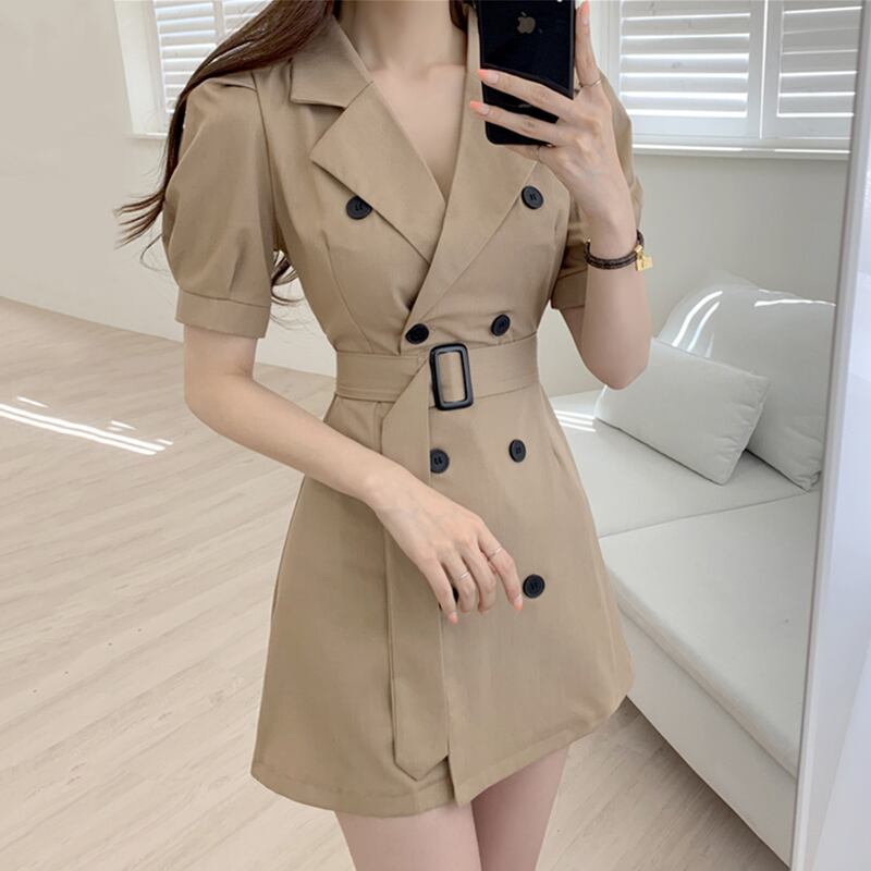 ワンピース ワンピドレス ショート ショート丈 膝上 袖あり 半袖 パフスリーブ 襟付き スーツカラー スリム ハイウエスト 前開き 大人可愛い カジュアル お洒落 かっこいい 大人女子 こなれ感 キュート 個性的 クール シック 無地 夏 誕生日 10代 20代 レディース OL 通勤 学生 通学 デート お出かけ 女子会 お泊まり 休日 イベント 旅行 ホテル ガーデン ショッピング 韓国 オルチャン コーデ スタイル モテ 美脚 ギフト 安い インスタ映え 韓国風 ワンサイズ キャメル 黒