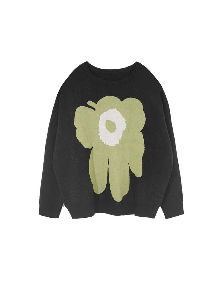 大きな花が特徴的なレトロ風なニットトップス。