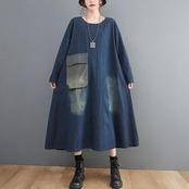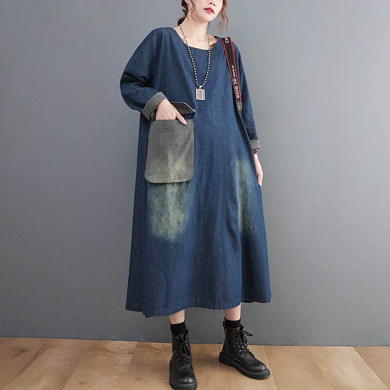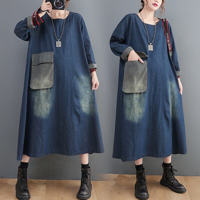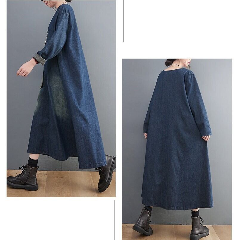 デニム ワンピース プルオーバー デニムワンピース ロング ロング丈 長袖 Uネック ラウンドネック ワイド Aライン ポケット かわいい 大人可愛い シンプル カジュアル 大人 おしゃれ アジアン エスニック 大人女子 こなれ感 ラフ ラブリー キュート ルーズ 存在感 抜け感 無地 春 秋 10代 20代 30代 レディース ママ マタニティ 学生 通学 お出かけ 公園デビュー 女子会 休日 着回し 普段使い 楽ちん モテ 体系カバー サイズ M L XL 2XL 大きいサイズ ゆったり ゆる サイズ