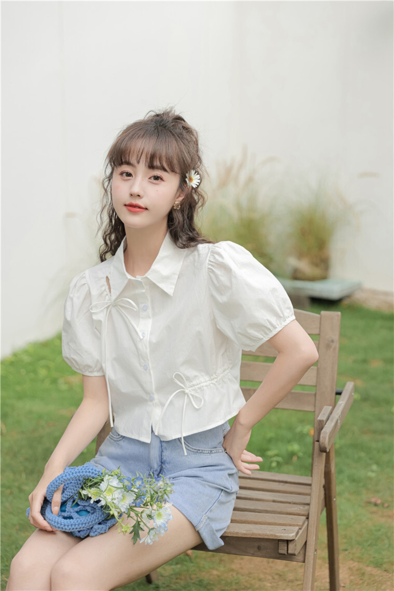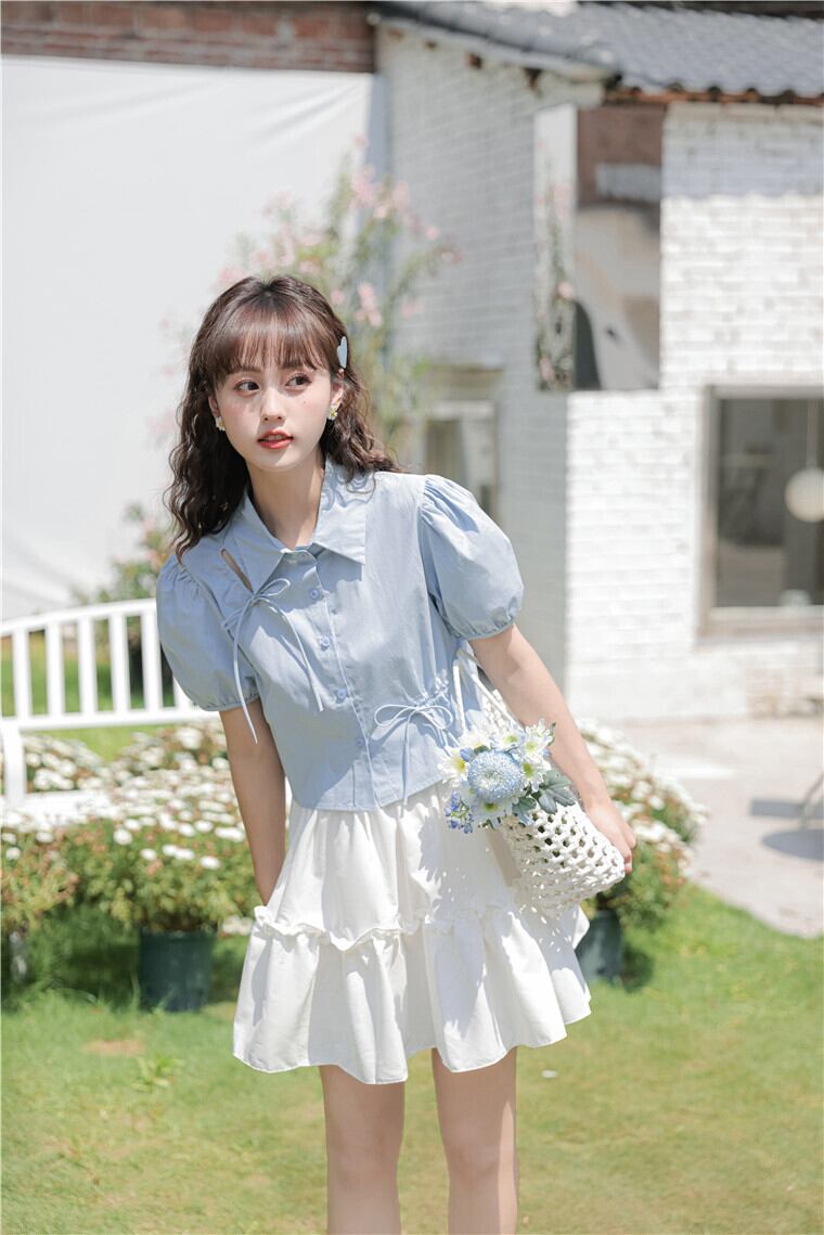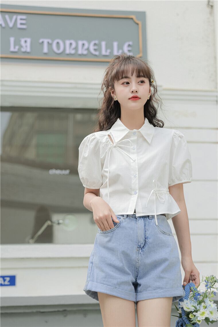 可愛いパフスリーブのショートシャツ